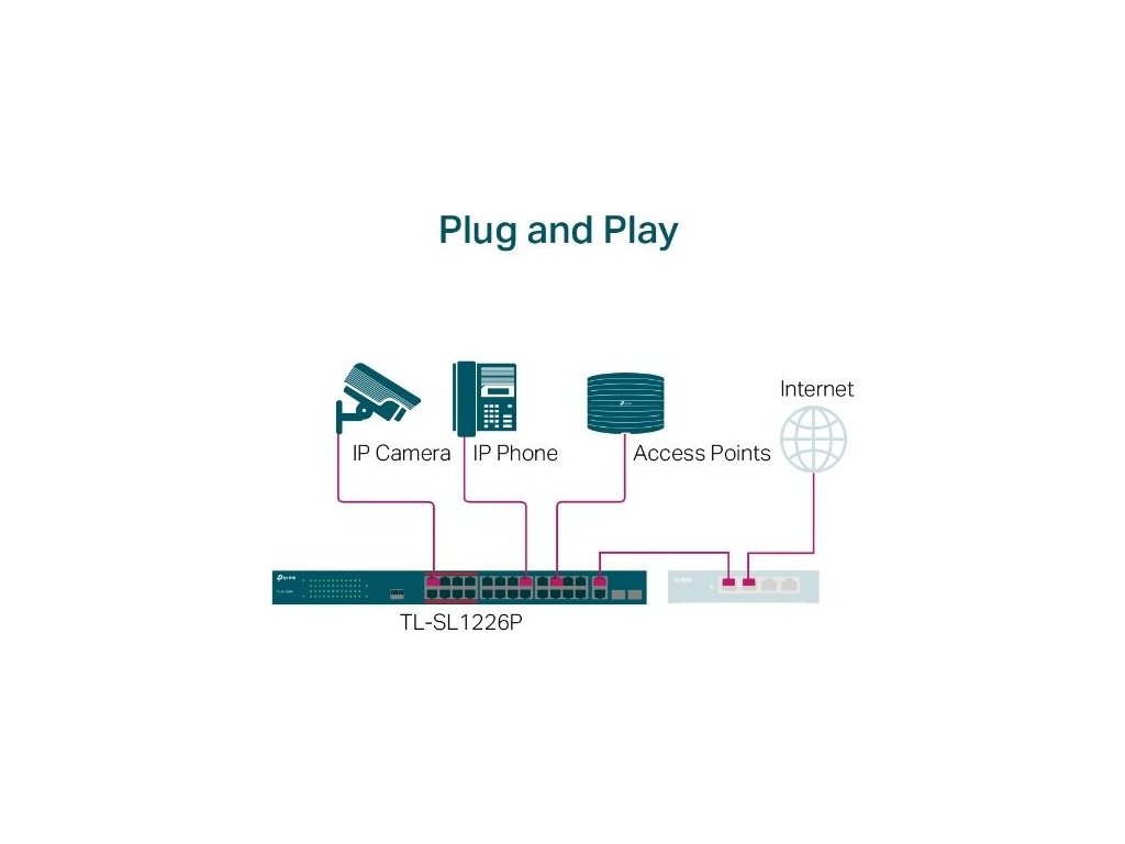 - Žádná konfigurace – plug and play switch TP-Link TL-SG1226P