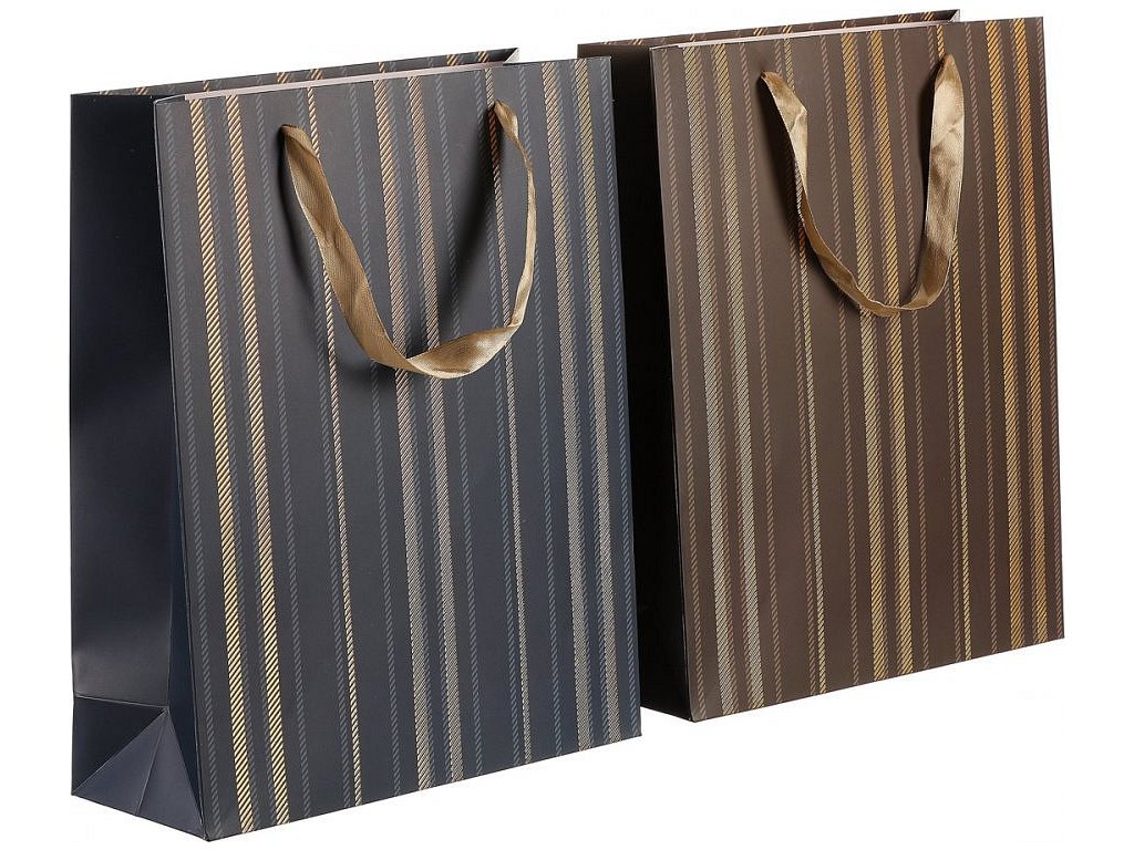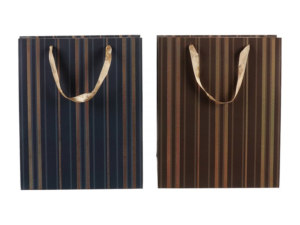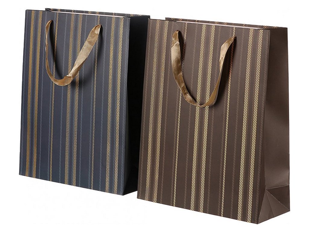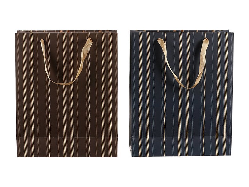 Naše dárkové tašky, v tomto případě s elegantními zlatými pruhy a v mixu dvou barevných variant, nejenže skvěle vypadají, ale jsou praktické a odolné. Dobře se nosí, jsou pevné a skladné. Vaše překvapení, zabalené v takto zdobené tašce udělá velkou radost osobě, kterou dobře znáte, a víte, že má tent styl oblíbený. Nabízíme velké množství ruzných druhů tašek, v závislosti na odlišném vzoru, barvě a velikosti, takže si u nás vybere hravě každý, právě podle vkusu své blízké osoby, které chce udělat radost.
