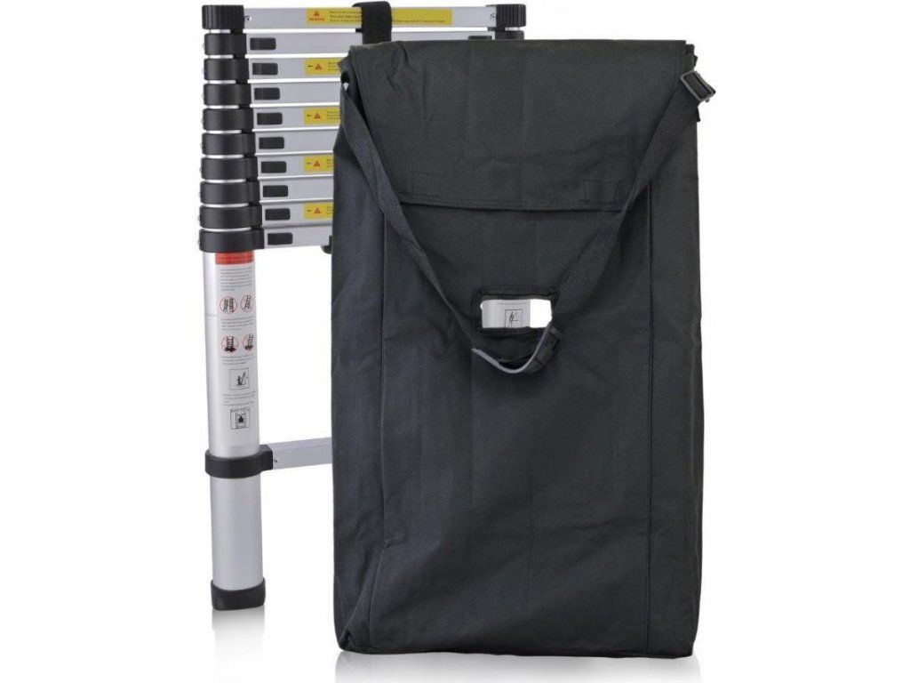 Její pohodlný trak je opatřen nárameníkem, díky kterému se váha žebříku rozloží na větší plochu a manipulace s ním tak bude mnohem jednodušší. Uprostřed tašky na teleskopický žebřík je otvor pro rychlé a pohodlné uchopení žebříku.