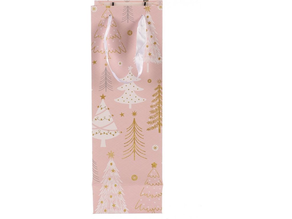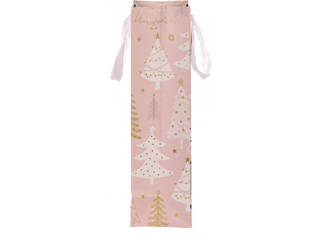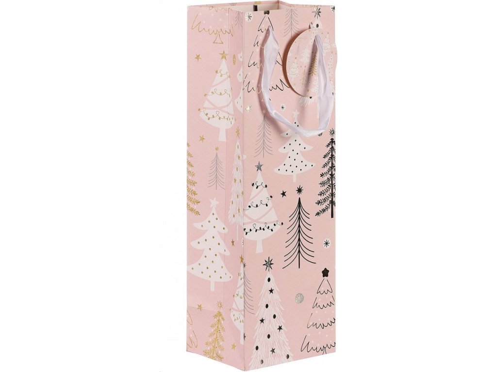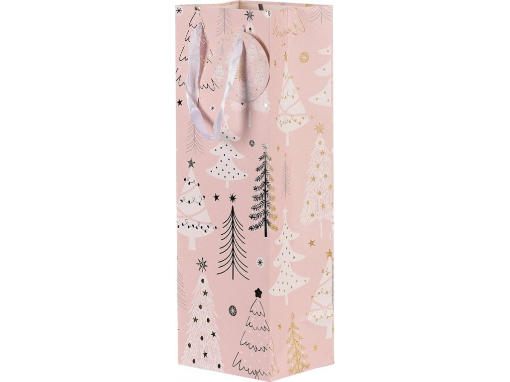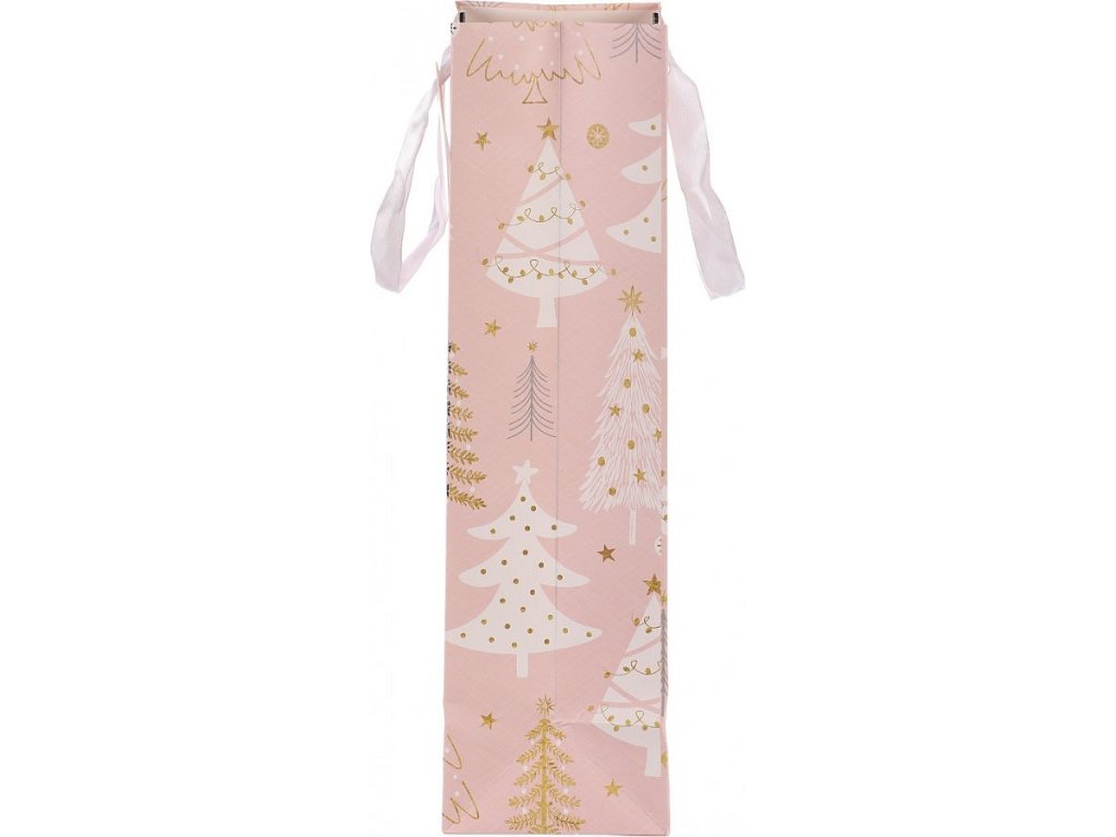 Taška papírová na víno - vánoční stromky, růžová SF1501-LONG