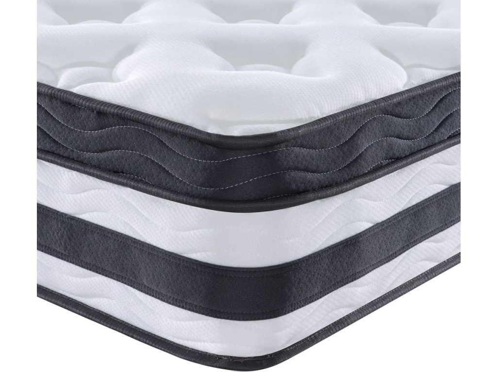 - Zvýšený komfort: Pružinová matrace má více vrstev, včetně pěnové, izolační a pružinové vrstvy. Tato kombinace zajišťuje mírnou až střední tvrdost a komfort pro všechny polohy při spánku. Matrace navíc účinně tlumí hluk a vibrace způsobené převalováním a otáčením, čímž zajišťuje klidný a nerušený spánek.
