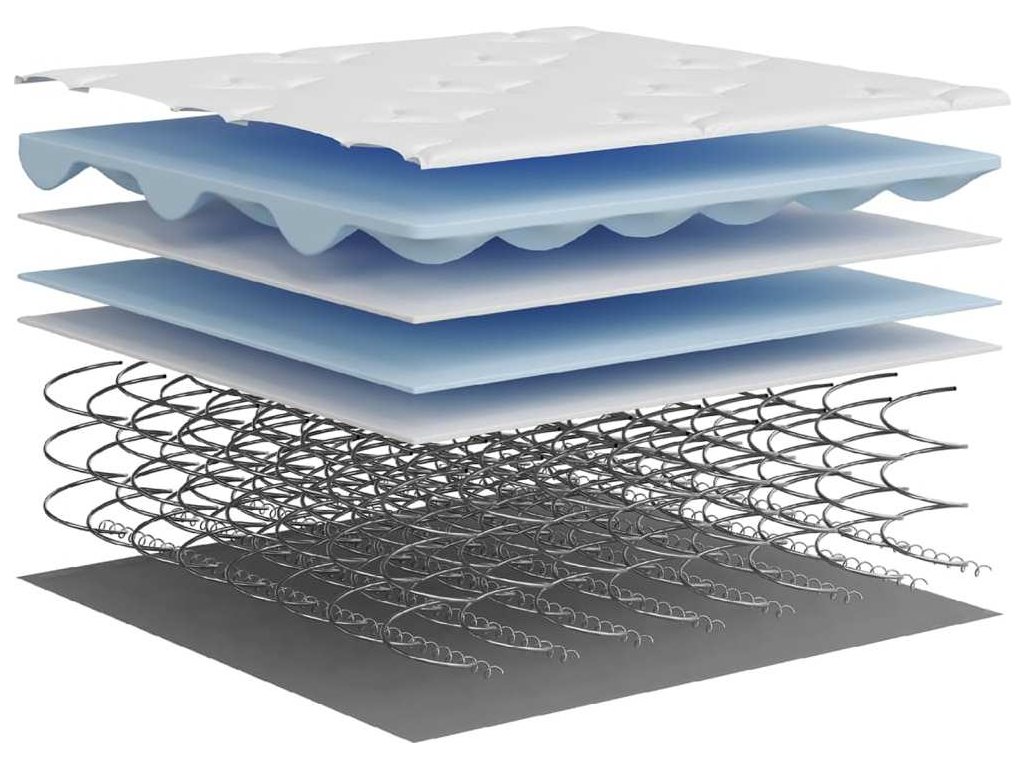 - Výplňový materiál: taštičkové pružiny, pěnový molitan, izolační podložka