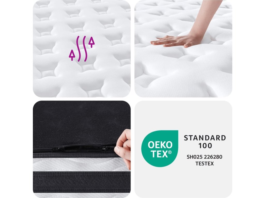 - Individuální opora: Každá spirálová pružina s látkovým povlakem reaguje na tlakové body, poskytuje cílenou oporu a rovnoměrně rozkládá tlak na páteř.