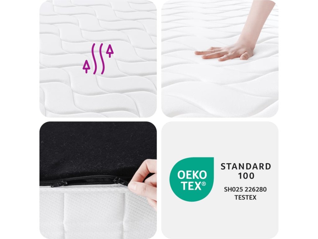 - Zvýšený komfort: Pružinová matrace má více vrstev, včetně pěnové, izolační a pružinové vrstvy. Tato kombinace zajišťuje mírnou až střední tvrdost a komfort pro všechny polohy při spánku. Matrace navíc účinně tlumí hluk a vibrace způsobené převalováním a otáčením, čímž zajišťuje klidný a nerušený spánek.