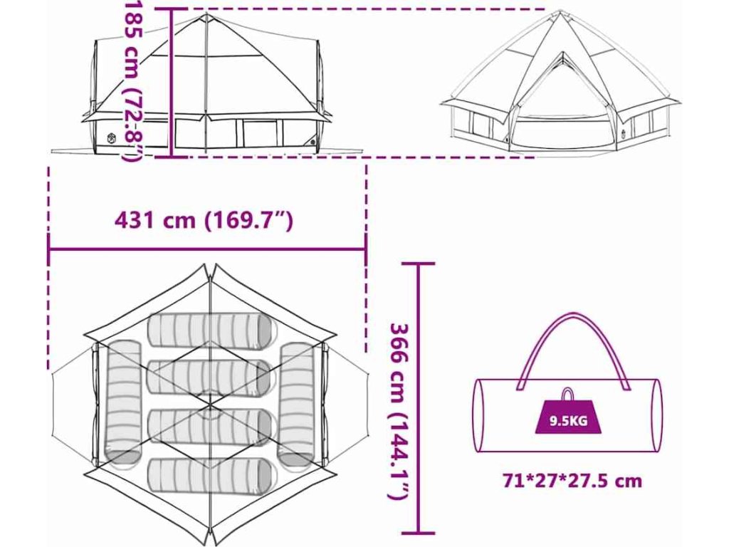 - Univerzální použití: Skvělý na zahradní párty nebo terasové útočiště, tenhle stan se hodí kamkoliv ven. Ať už je to rodinné setkání nebo chvíle o samotě, je to spolehlivé a stylové místo pro odpočinek.