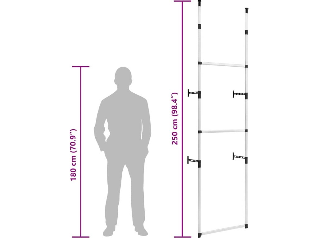 Teleskopický šatní systém je vyrobený z hliníku, takže je odolný a robustní. Tento úložný regál s teleskopickým systémem lze výškově nastavit a přizpůsobit prostoru a vašim požadavkům. Nabízí jedinečný a důmyslný způsob uspořádání šatníku.