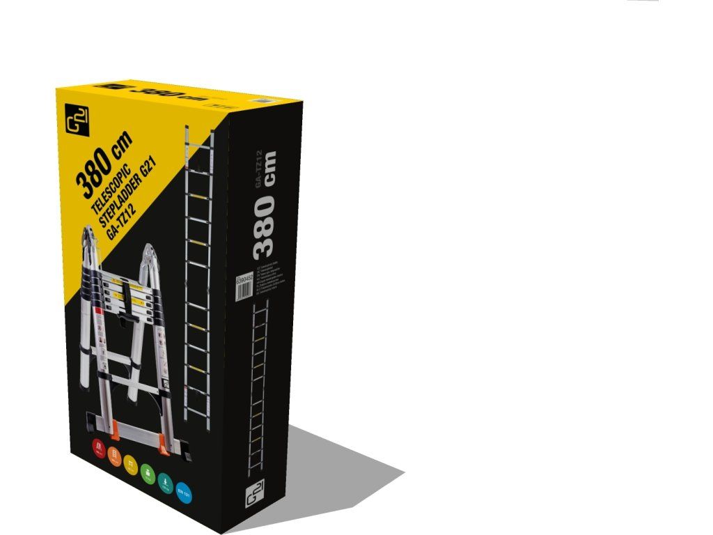 Teleskopický žebřík G21 GA-TZ12-3,8M původně vyvinutý pro profesionály, je špičkový model, který se vyznačuje dostatečně pevnou a odolnou konstrukcí, díky systému duralových profilů. Na jeho konstrukci byly využity lehké hliníkové materiály, které snižují jeho celkovou hmotnost a zároveň zabezpečují složení žebříku do minimální úložné velikosti.