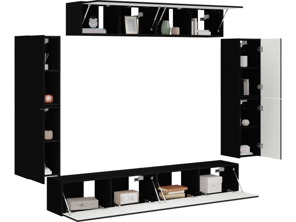 - Nastavitelná konfigurace na stěnu Umožňuje snadné pověšení, tahle TV skříň šetří místo a hodí se do malých prostor. Její modulární design umožňuje skvěle zapadnout do různých rozvržení, takže je ideální pro různé styly interiéru, zatímco podlaha zůstává volná pro jiný nábytek.