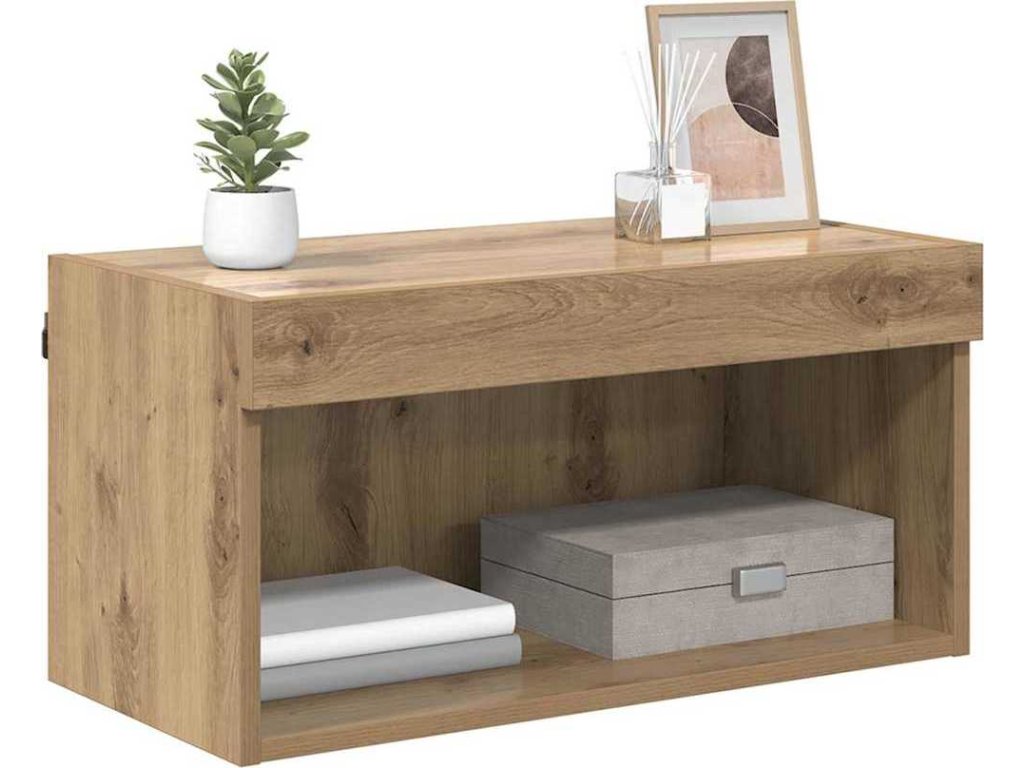 - Funkce / funkčnost / design: Skříňka je navržena s ohledem na moderní styl a má nástěnný design, který úsporně využívá prostor. Uvolňuje podlahu pro další prvky ve vašem pokoji a přitom nabízí dostatek místa na elektroniku, knihy a dekorace. Její minimalistické linie ladí s různými styly interiérů.