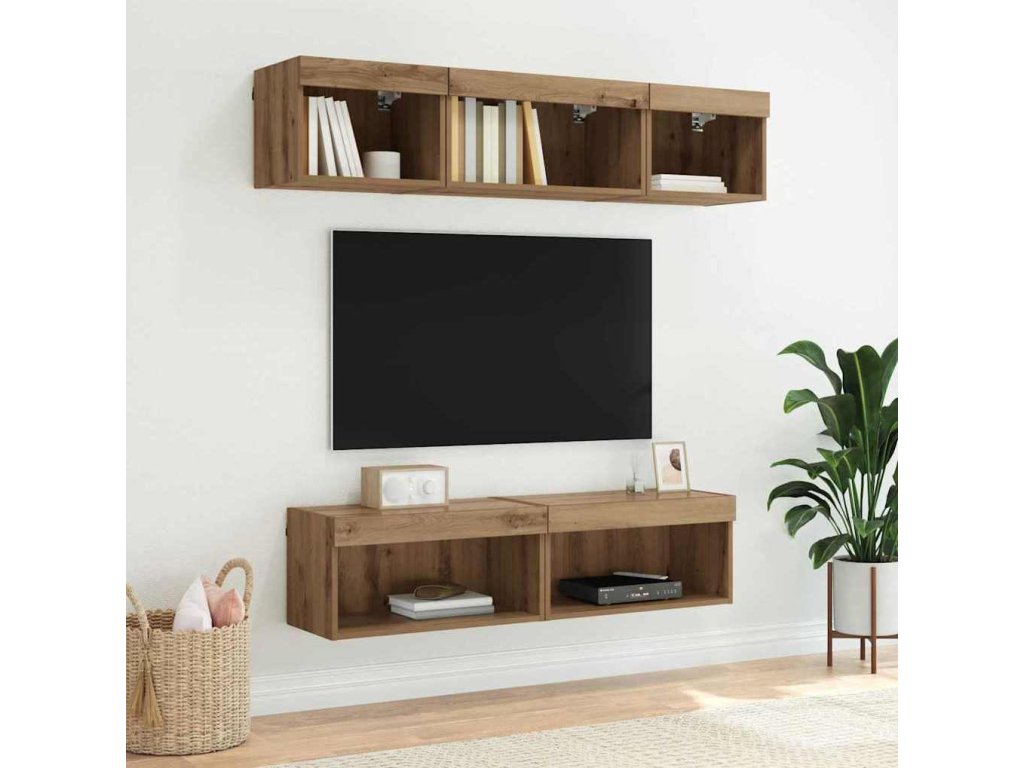 Sestava TV skříněk s LED Artisanový dub kompozitní dřevo [882962]