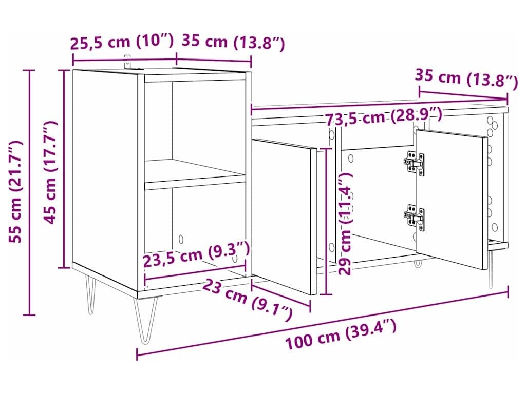 Tato moderní TV skříňka skvěle spojuje funkčnost a styl. Minimalistický design ji dělá atraktivní volbou pro každý obývák. Obdélníkový tvar nabízí prostor pro vaše mediální zařízení a dekorace. Železné nohy a inženýrské dřevo zajistí její odolnost a nadčasovost.