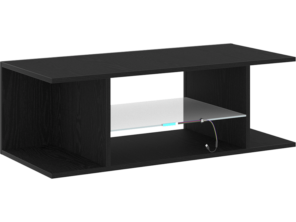 - LED osvětlení: Skříň má zabudovaný LED pásek, který je napájený přes USB. Přidává příjemné, ambientní světlo, které obohacuje váš zážitek ze sledování.