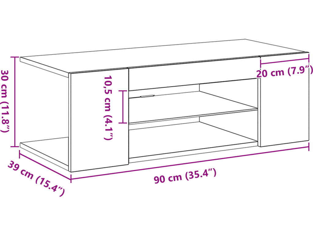 - Celkové rozměry: 90 x 39 x 30 cm (D x Š x V)