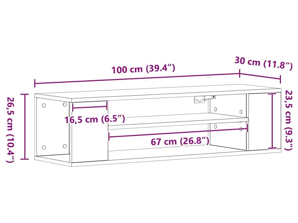 - Celkové rozměry: 100 x 30 x 26,5 cm (D x Š x V)