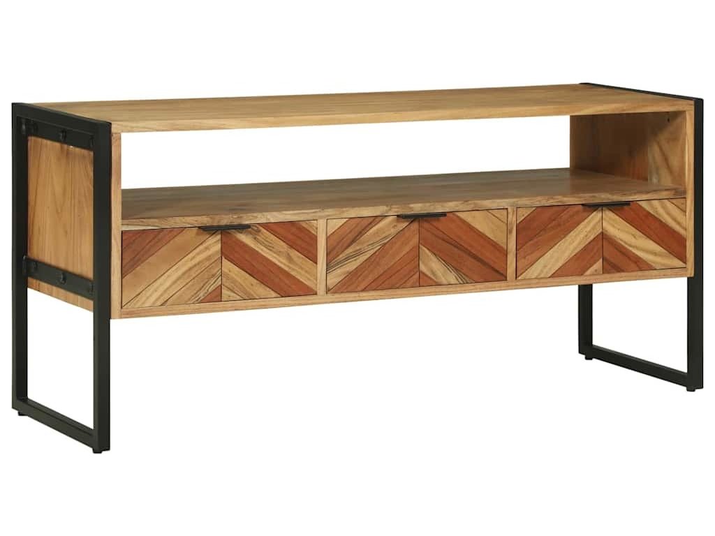 - Masivní akáciová konstrukce: TV skříňka je s robustním tělem z kvalitního akáciového dřeva, které dodává obýváku přirozenou hnědou barvu a příjemnou atmosféru. Tento materiál je odolný a dlouho si udržuje lesk.