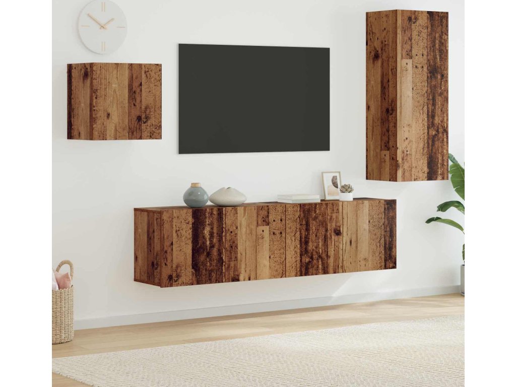 Televizní skříň Nástěnný 4 pcs Staré dřevo kompozitní dřevo [3402764]