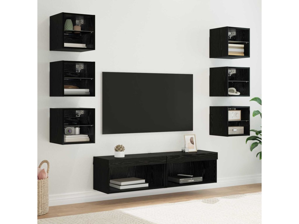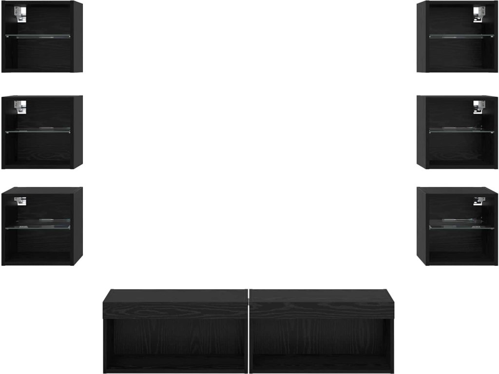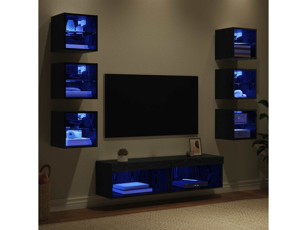 Televizní skříň s LED pásovými světly 8 pcs Černý dub Sklo [3402940]