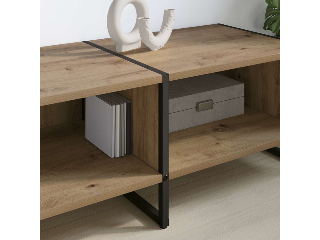 Tahle průmyslová TV skříňka je určená pro to, aby dodala tvému obýváku styl a praktičnost. Její pevná konstrukce je z inženýrského dřeva a ocelové nohy jí dodávají stabilitu, takže zaujme elegantním designem. Perfektní do moderního obýváku, poskytuje stylovou platformu pro tvůj televizor a dostatek prostoru na dekorace a úložné části pro technologie.