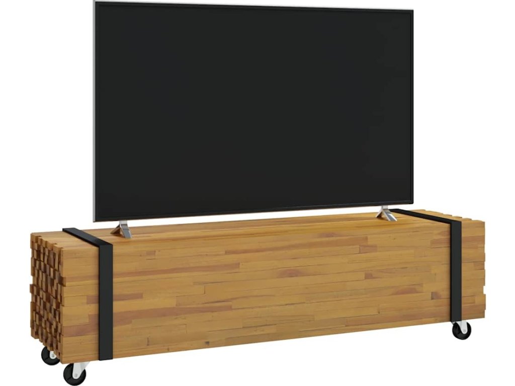 - Odolné materiály: Tento televizní stolek, vyrobený z kvalitního masivního teakového dřeva, zaručuje dlouhou životnost a stabilitu. Vypadá krásně a dodává vaší domovu jedinečný styl.