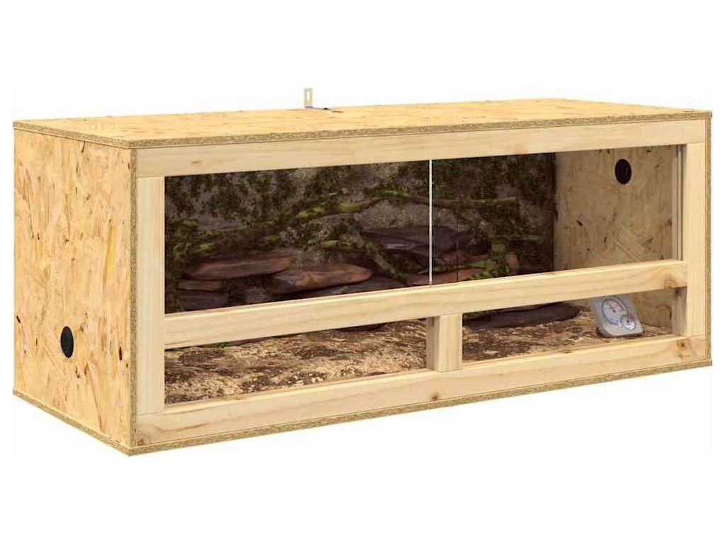 Toto OSB terárium je bezproblémová kombinace rustikálního vzhledu a moderního designu, skvělé pro vytvoření příjemného prostředí pro vaše plazy nebo hlodavce. Má hezkou dřevěnou texturu a praktický obdélníkový tvar, takže pohodlí a bezpečnost vašich mazlíčků jsou na prvním místě. Jeho přírodní vzhled skvěle doplní každý interiér a vnese do vašeho prostoru kousek přírody.