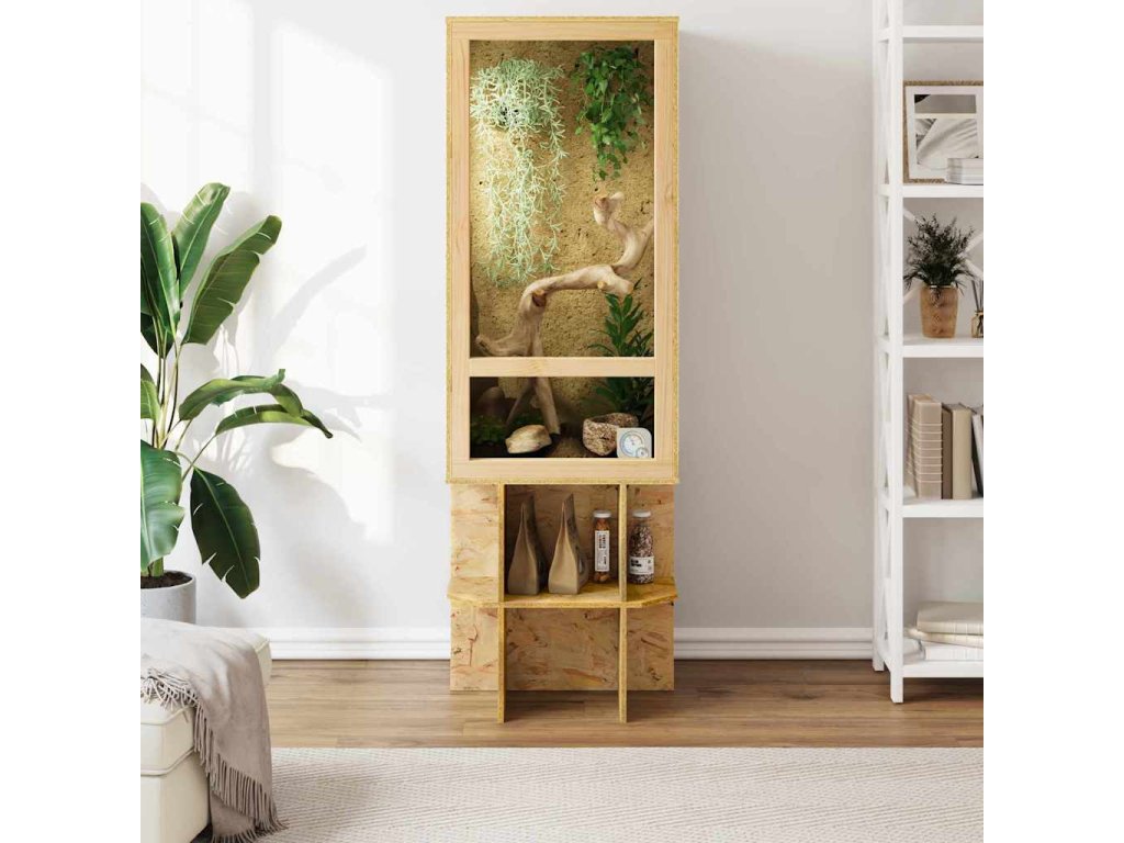 - Komplexní design: S rustikálním a přírodním stylem, terárium má vestavěné police z OSB, ideální pro úpravu biotopu vašich mazlíčků s rostlinami a dekoracemi. Posuvné skleněné dveře na hladké dráze zjednodušují použití a umožňují snadnou údržbu, což zajišťuje zdravé prostředí pro vaše mazlíčky.