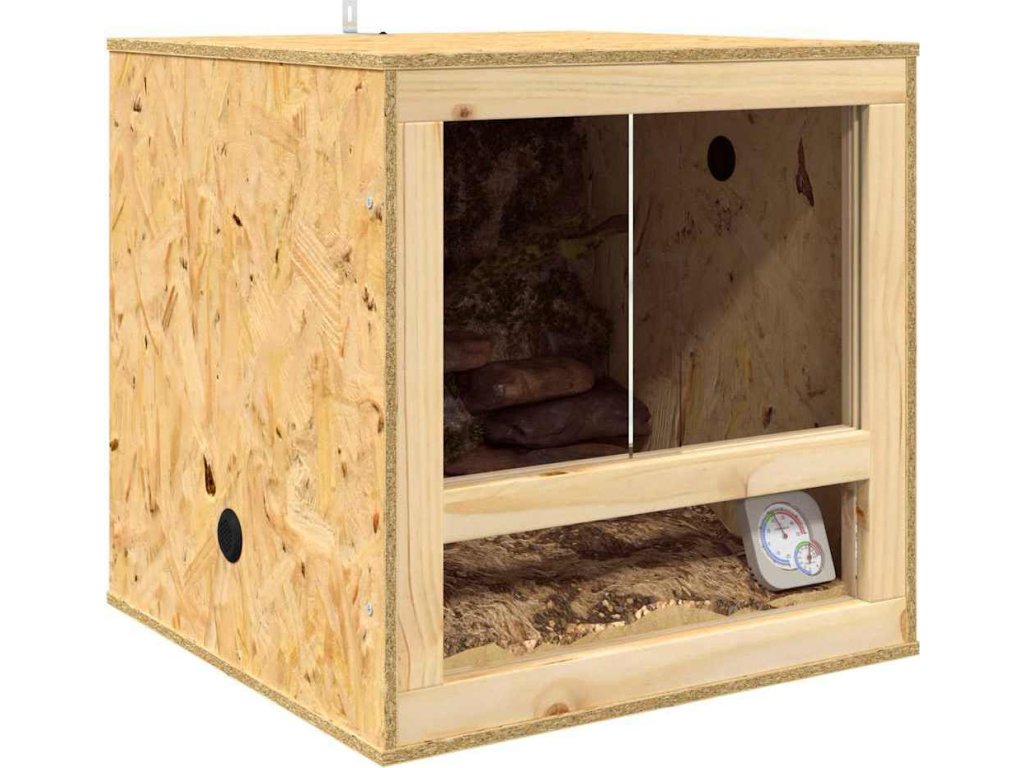 Toto OSB terárium je bezproblémová kombinace rustikálního vzhledu a moderního designu, skvělé pro vytvoření příjemného prostředí pro vaše plazy nebo hlodavce. Má hezkou dřevěnou texturu a praktický obdélníkový tvar, takže pohodlí a bezpečnost vašich mazlíčků jsou na prvním místě. Jeho přírodní vzhled skvěle doplní každý interiér a vnese do vašeho prostoru kousek přírody.