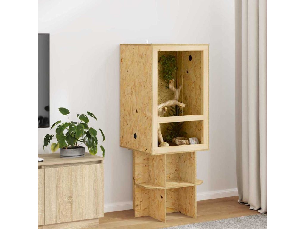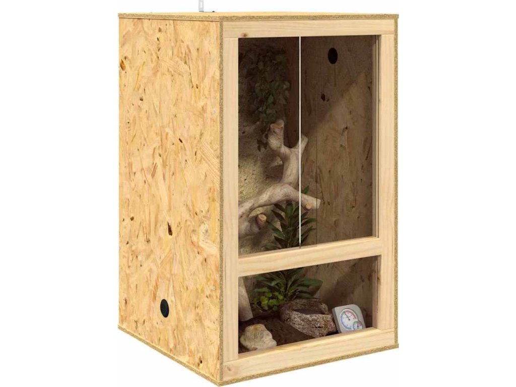 - Pevná konstrukce OSB a sklo: Toto terárium je vyrobené z kvalitního OSB a skla, která dávají trvanlivé a odolné prostředí. Přírodní textura OSB dodává rustikální vzhled, který se hodí do různých interiérů. Jeho robustní konstrukce zaručuje, že toto terárium může vydržet každodenní používání, čímž se stává trvalým domovem pro plazy a další malá zvířata.