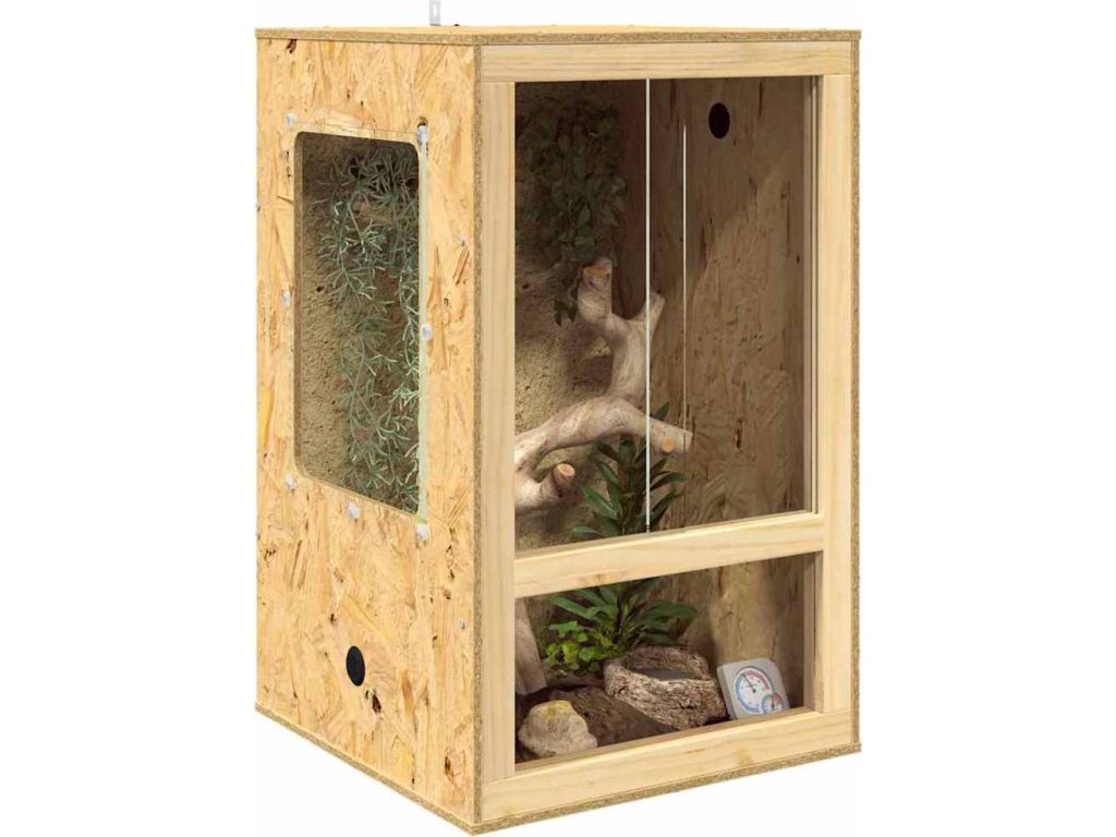 - Prémiové materiály: Vyrobeno z kvalitního OSB, terárium je odolné a spolehlivé, takže je skvělé pro chov i těch nejodolnějších plazů. Sklo zajišťuje jasný pohled a usnadňuje sledování zvířat.