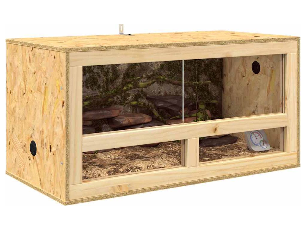 Toto OSB terárium je bezproblémová kombinace rustikálního vzhledu a moderního designu, skvělé pro vytvoření příjemného prostředí pro vaše plazy nebo hlodavce. Má hezkou dřevěnou texturu a praktický obdélníkový tvar, takže pohodlí a bezpečnost vašich mazlíčků jsou na prvním místě. Jeho přírodní vzhled skvěle doplní každý interiér a vnese do vašeho prostoru kousek přírody.