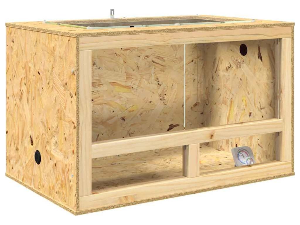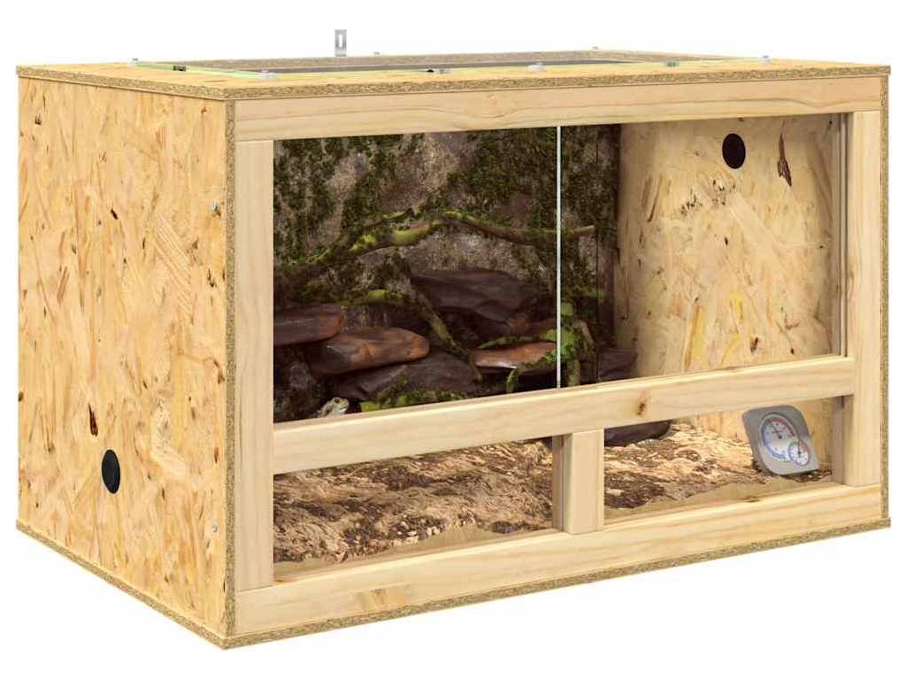 Toto rustikální terárium z OSB je navržené pro plazy a obojživelníky, vypadá skvěle díky hnědému povrchu a pevnému provedení. Je to super kousek do domova každého milovníka zvířat. S obdélníkovým tvarem je ideální pro ty, co hledají kombinaci stylu a funkčnosti, takže se každý mazlíček doma cítí skvěle. Je to univerzální prostor pro různé plazí mazlíčky.