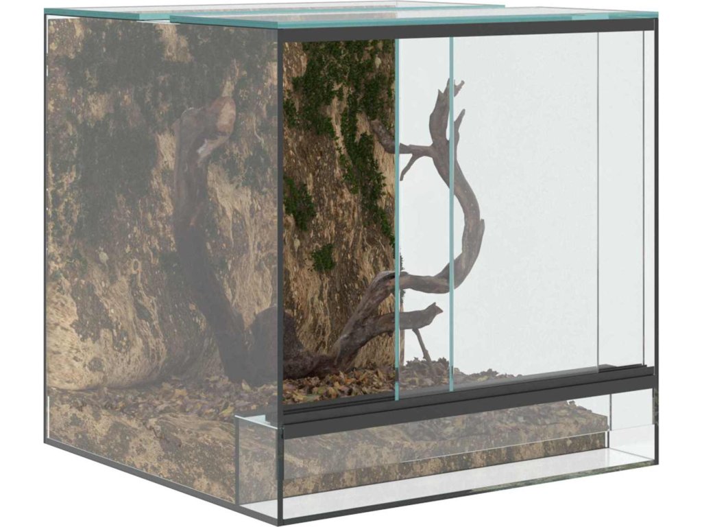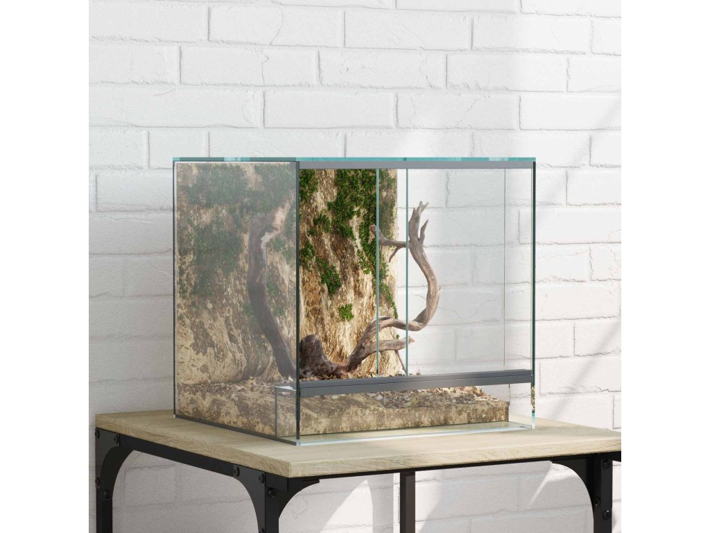 Tohle skleněné terárium je moderní kryt pro plazy a obojživelníky. Nabízí 360stupňový výhled na jejich habitat. Elegantní design z hladkého skla spojuje jednoduchost a funkčnost, takže se hodí do každého interiéru nebo zahrady. Sklo je odolné proti poškrábání, což chrání zvířata i samotný produkt, a zajistí vám vždy skvělý pohled dovnitř.