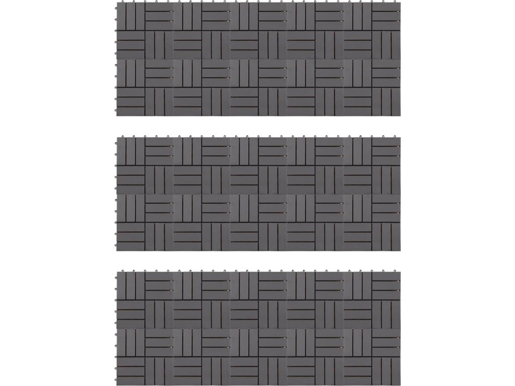 Tato sada 30 terasových dlaždic z tvrdého dřeva se výborně hodí ke zkrášlení různých povrchů či chodníčků ve vaší zahradě, na terase, na balkoně nebo v libovolné místnosti. Jejich vzor plní nejen dekorativní funkci, ale zároveň také zajišťuje, abyste neuklouzli.
