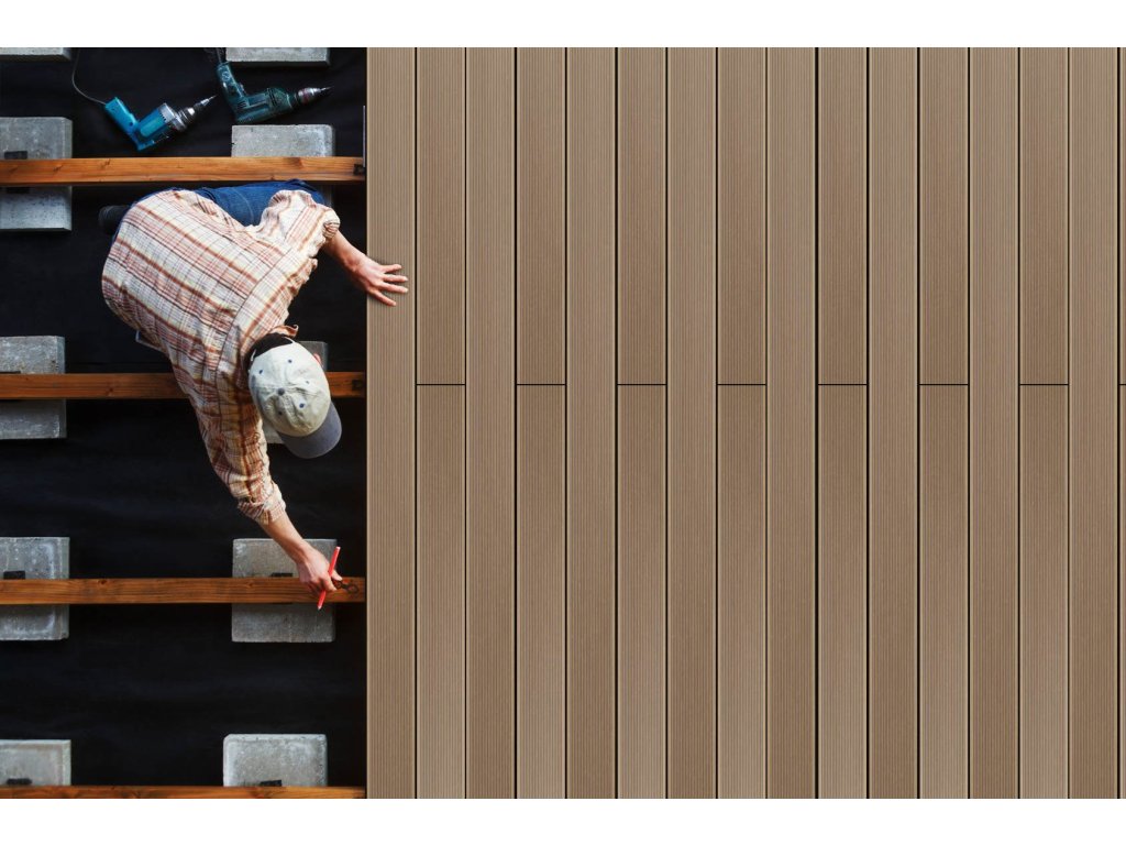 Materiál WPC (Wood plastic components) je směs tvořená z 60 % z dřevitých vláken a ze 40 % z plastu. S pomocí vlivu tlaku a teploty (extrudace) vzniká odolný a bezúdržbový materiál, který je praktický a po všech stránkách vysoce užitkový.