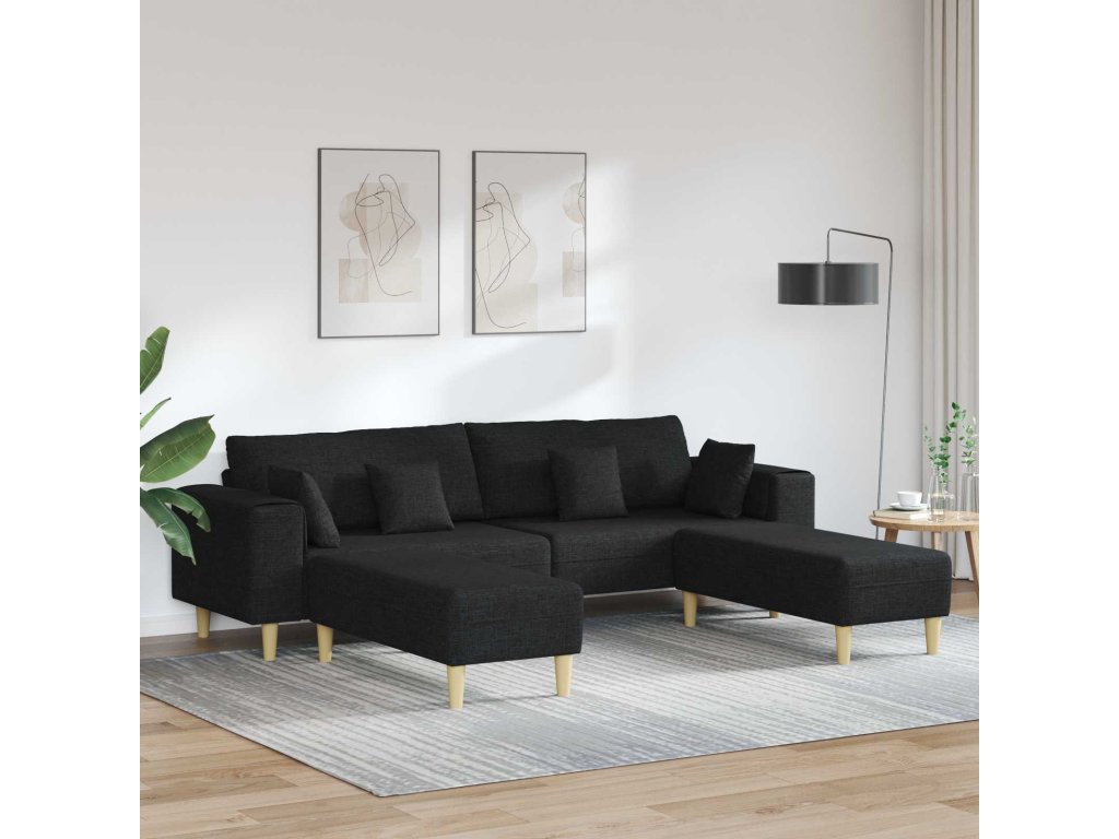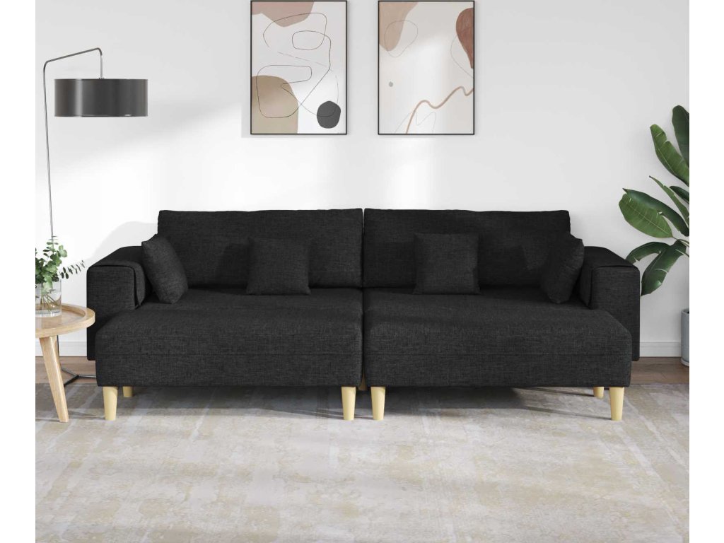 Pohovka s polštářem 3 pcs Černá textil [3335164]