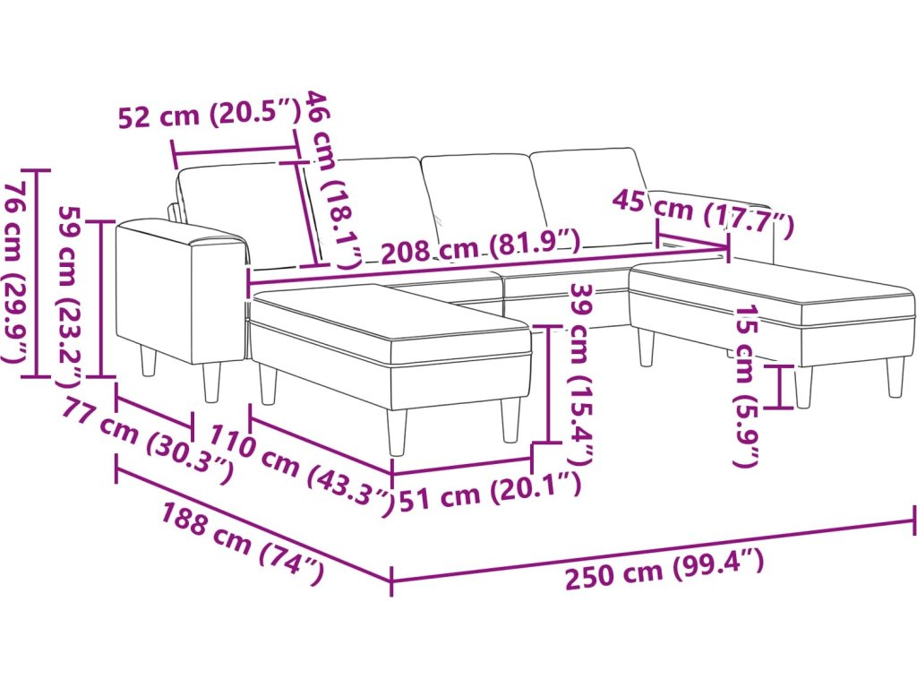 - 2 x ottoman: 110 x 51 x 39 cm (D x Š x V)