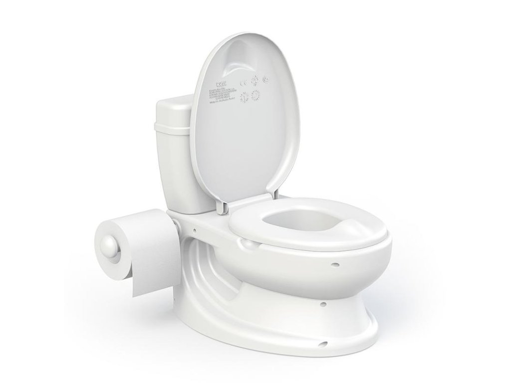 Chce vaše dítě chodit na opravdový záchod, ale je ještě malé? Je už načase, aby se vaše děťátko zbavilo plenek? Vzdělávací nočník Dolu Educational Potty Aid pomůže dětem v batolecím věku zvládnout velice důležitý milník v životě lidském – přechod z nočníku na velkou mísu. Představuje totiž dokonalou zmenšeninu opravdové toalety, včetně splachovadla s reálným zvukem a držáku na toaletní papír, jejíž realistický design se hodí ke všem dekorům koupelen.
