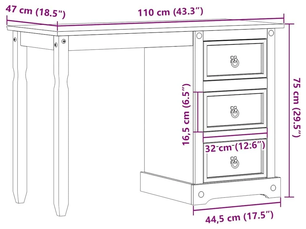 Toaletní stolek Corona 110 x 47 x 75 cm masivní borové dřevo [4005685]