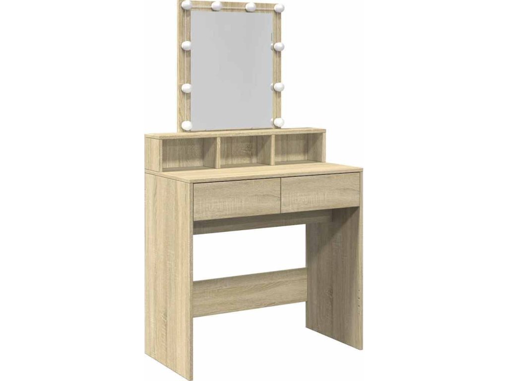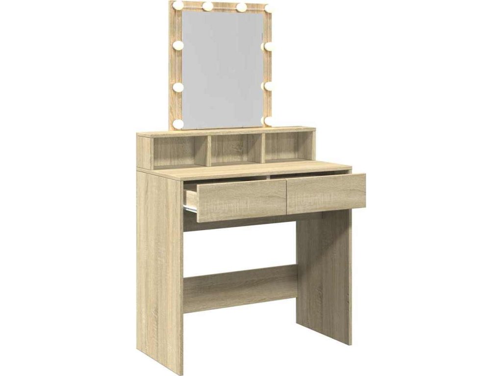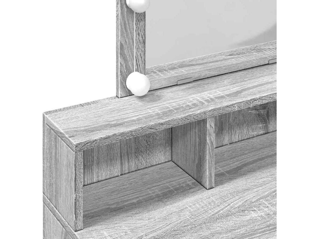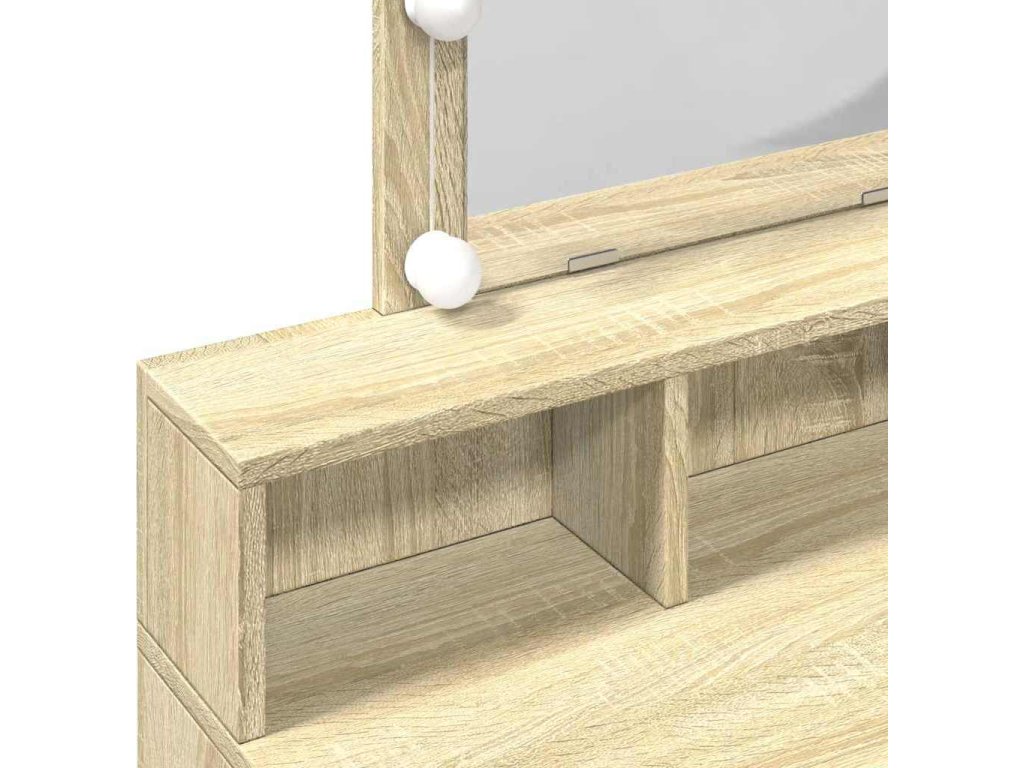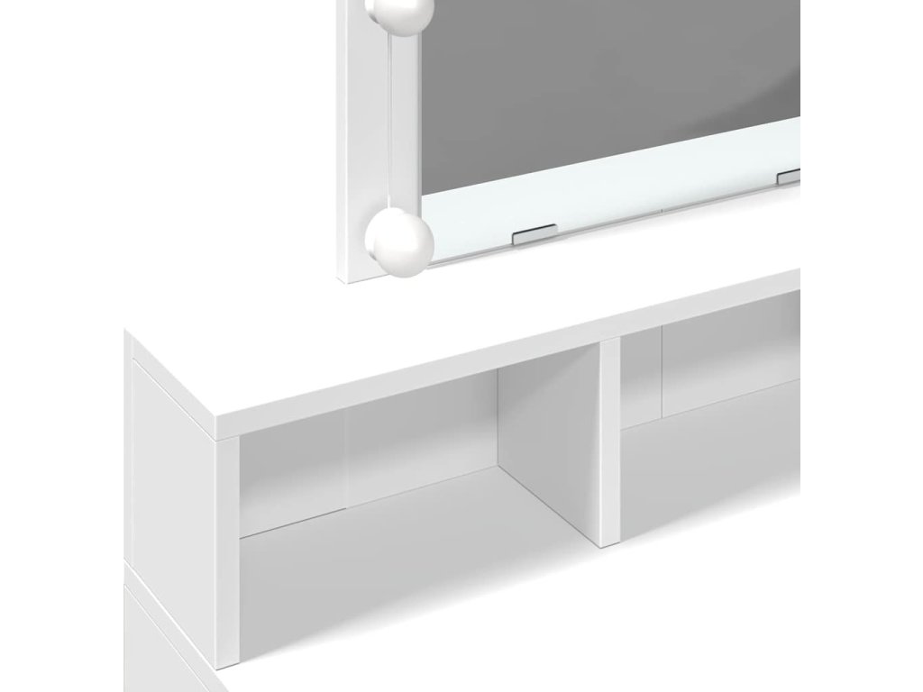 - LED světlo: Kosmetický stolek má LED žárovky s USB, u kterých lze snadno přepínat režimy z teplé do studené bílé. Integrované LED žárovky kolem zrcadla zvýrazní i vaši krásu.