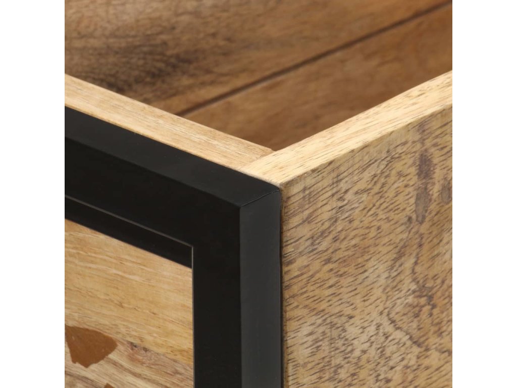 - Materiál: masivní hrubé mangovníkové dřevo s přírodním povrchem, práškově lakované železo