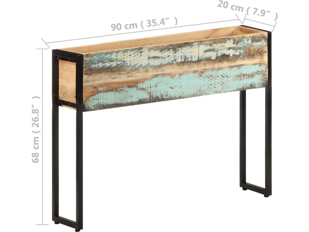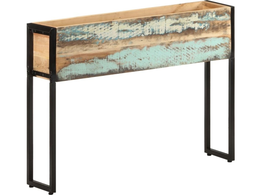 Truhlík je vyrobený z masivního recyklovaného dřeva, které pochází z trámů, podlah a podpěrných nosníků starých budov určených k demolici. Sestává tedy z různých druhů dřeva, jako je borovice, teak, dub, mangovník, akácie apod. Recyklované dřevo tak nabývá vlastností všech těchto rozličných typů dřevin. Navíc je již zestárlé, ošlehané a vyschlé, takže se nesmršťuje ani neohýbá. Stabilitu truhlíku zajišťuje práškově lakovaný železný rám. Vyvýšený záhon je v ideální výšce, takže můžete o své rostliny pečovat pohodlně, aniž byste namáhali záda a kolena a rychle se unavili. Truhlík je také prostorově úsporný a prostor pod truhlíkem můžete využít k uložení semen, země, kropáče apod.