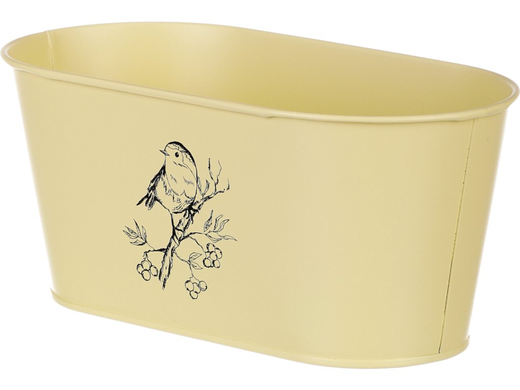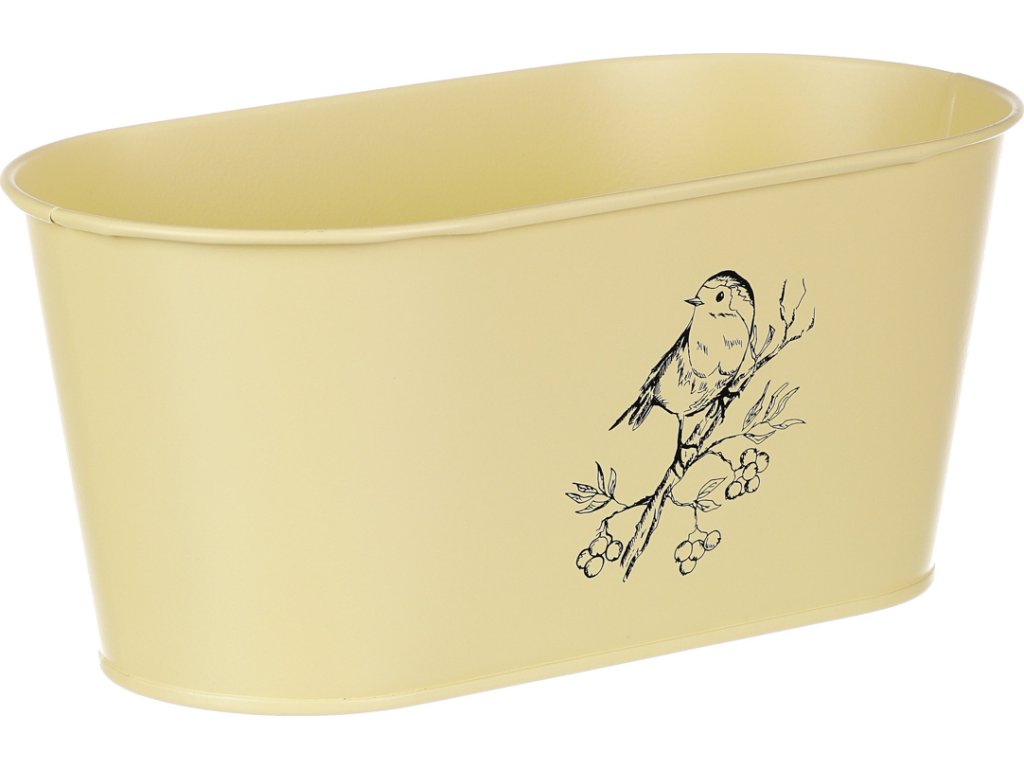 Truhlík kovový - motiv ptáčka, barva žlutá KK123 YEL