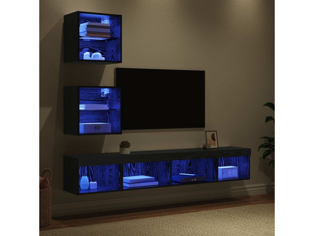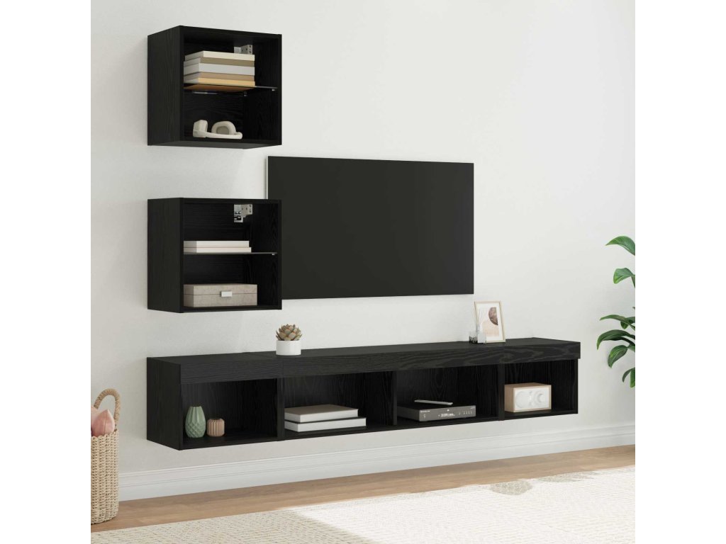 TV nástěnné jednotky s LED 5 pcs Černý dub kompozitní dřevo [3402961]