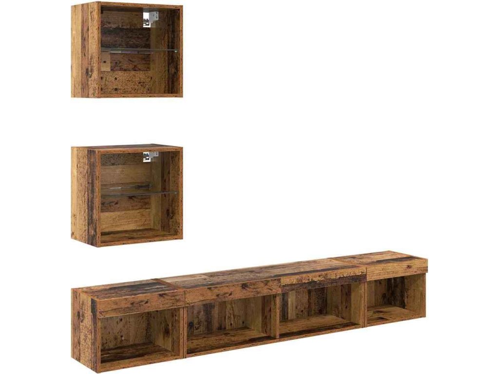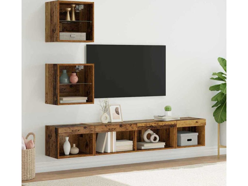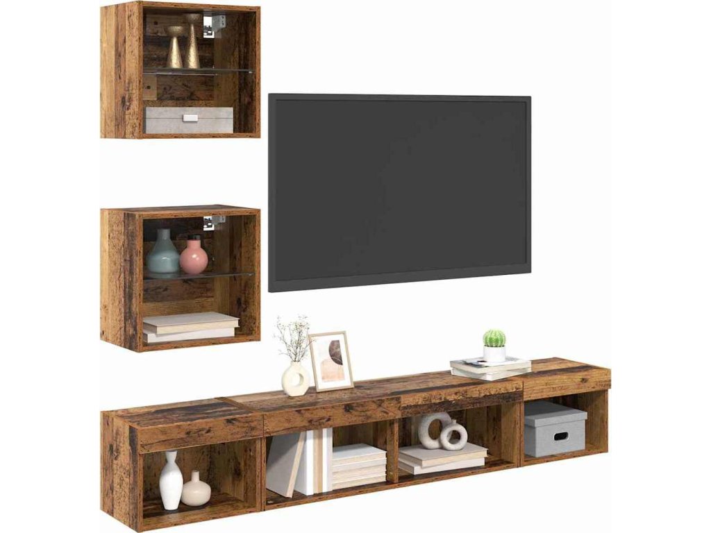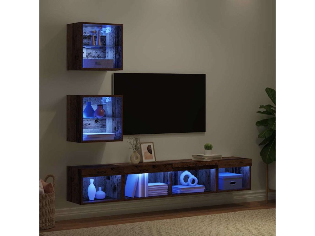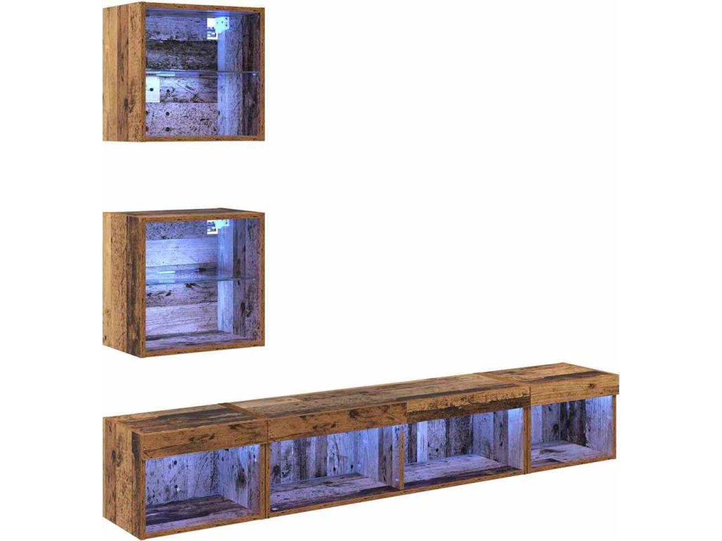 TV nástěnné jednotky s LED 5 pcs Staré dřevo kompozitní dřevo [3403577]