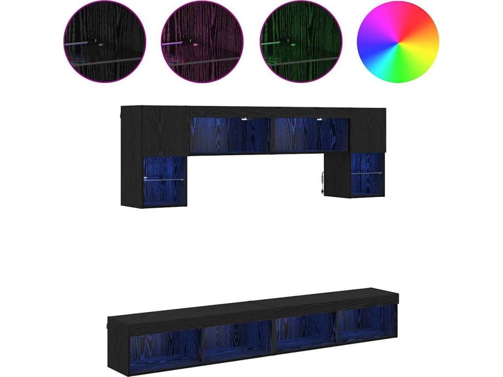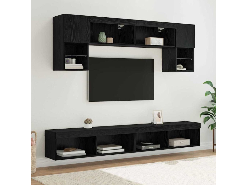 TV nástěnné jednotky s LED 6 pcs Černý dub kompozitní dřevo [3402964]