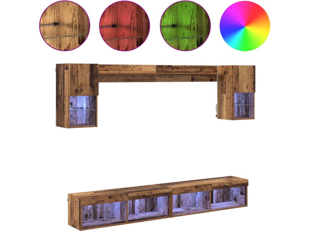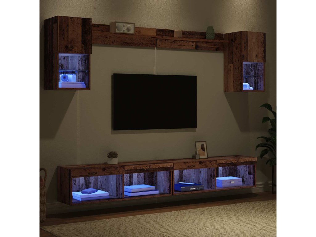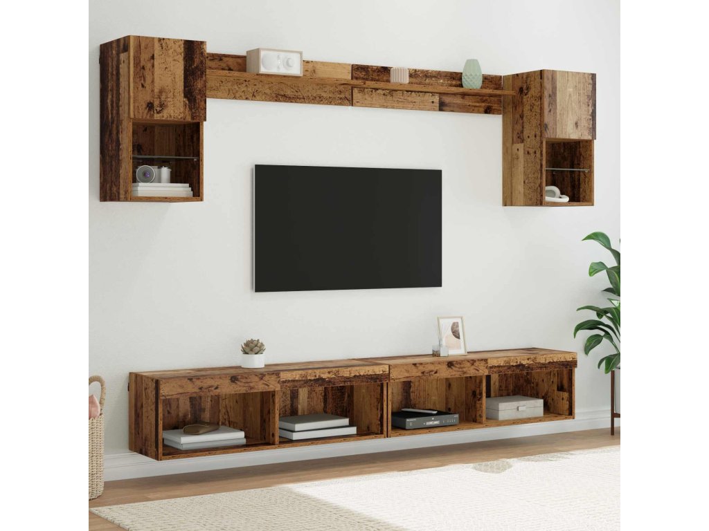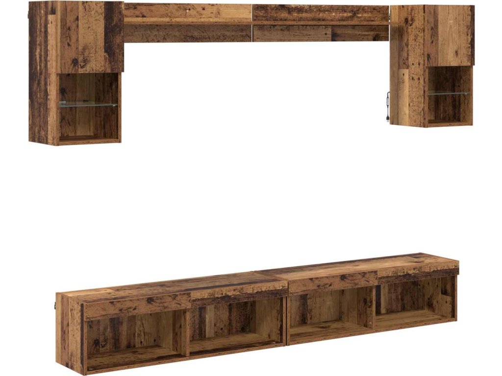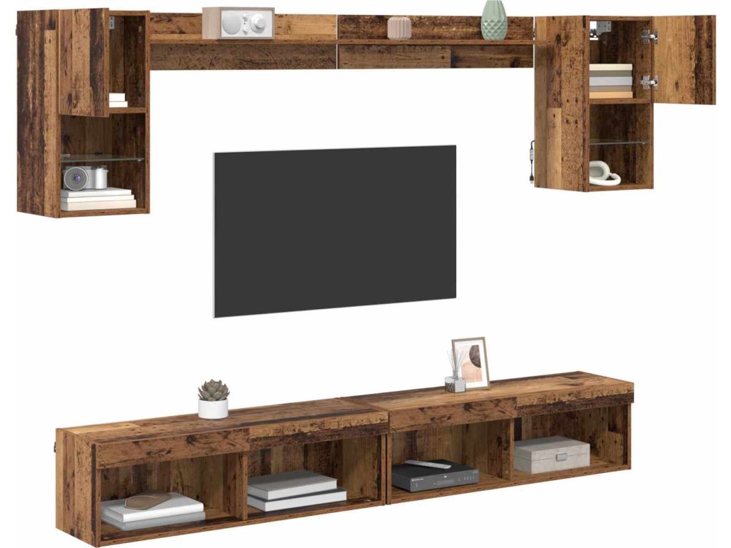TV nástěnné jednotky s LED 6 pcs Staré dřevo kompozitní dřevo [3402955]