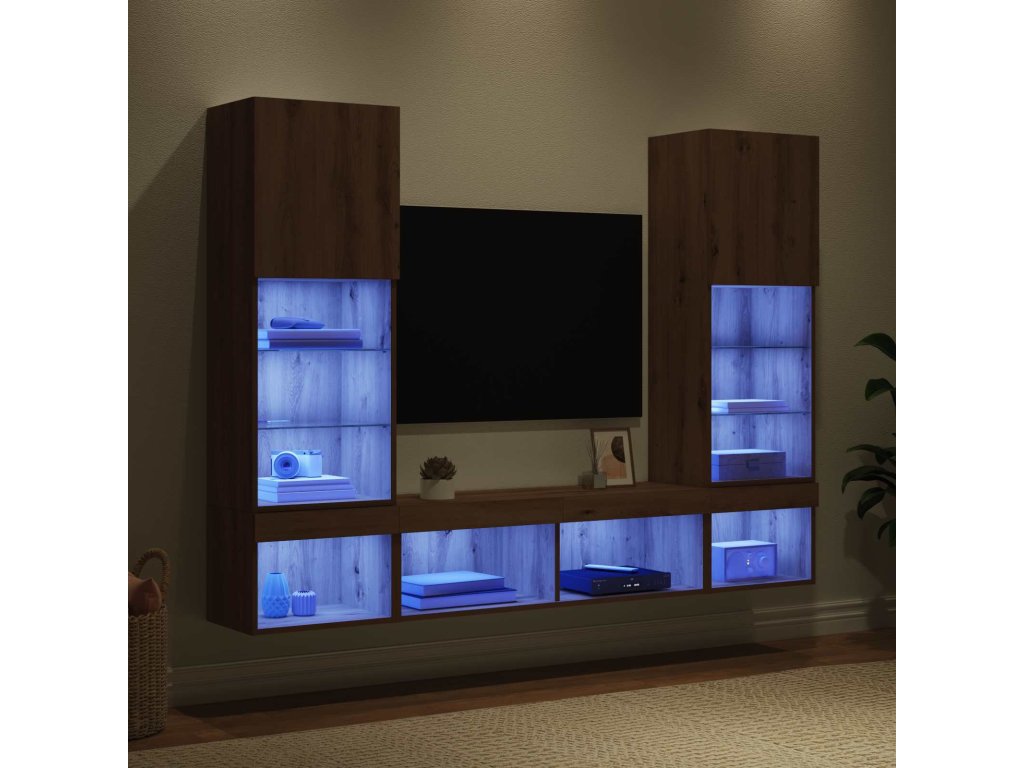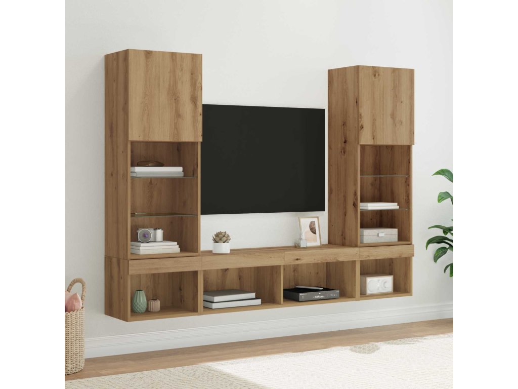 TV nástěnné jednotky s LED s LED Nástěnný 5 pcs Artisanový dub [3402958]