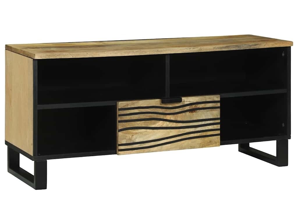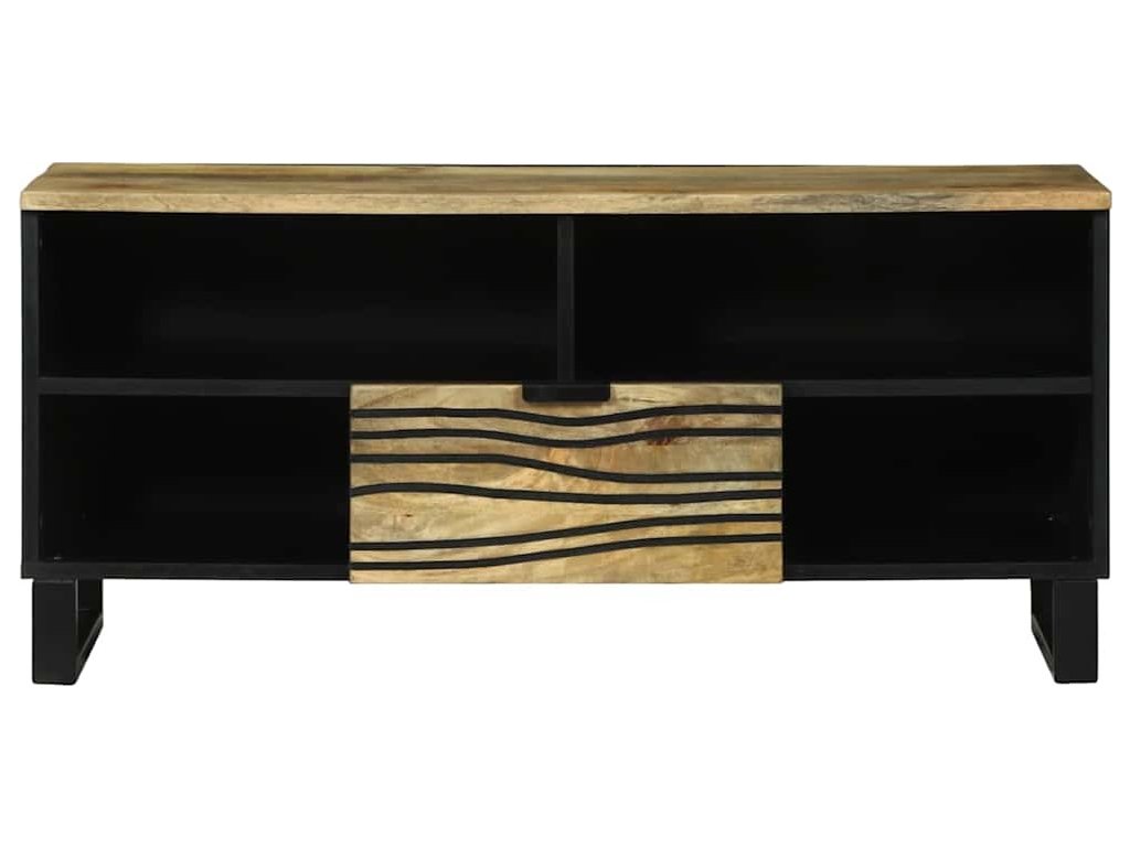 Tato dřevěná TV jednotka spojuje elegantní design s praktičností, což je ideální pro moderní obýváky. Její obdélníkový tvar a černá barva jí dodávají šik vzhled, který oživí jakýkoliv prostor. Hlavním materiálem je inženýrské dřevo, takže vydrží a bude důležitým prvkem vašeho pokoje. Tato jednotka vytváří stylový středobod, který doplní vzhled místnosti a zároveň nabízí praktická úložná řešení.
