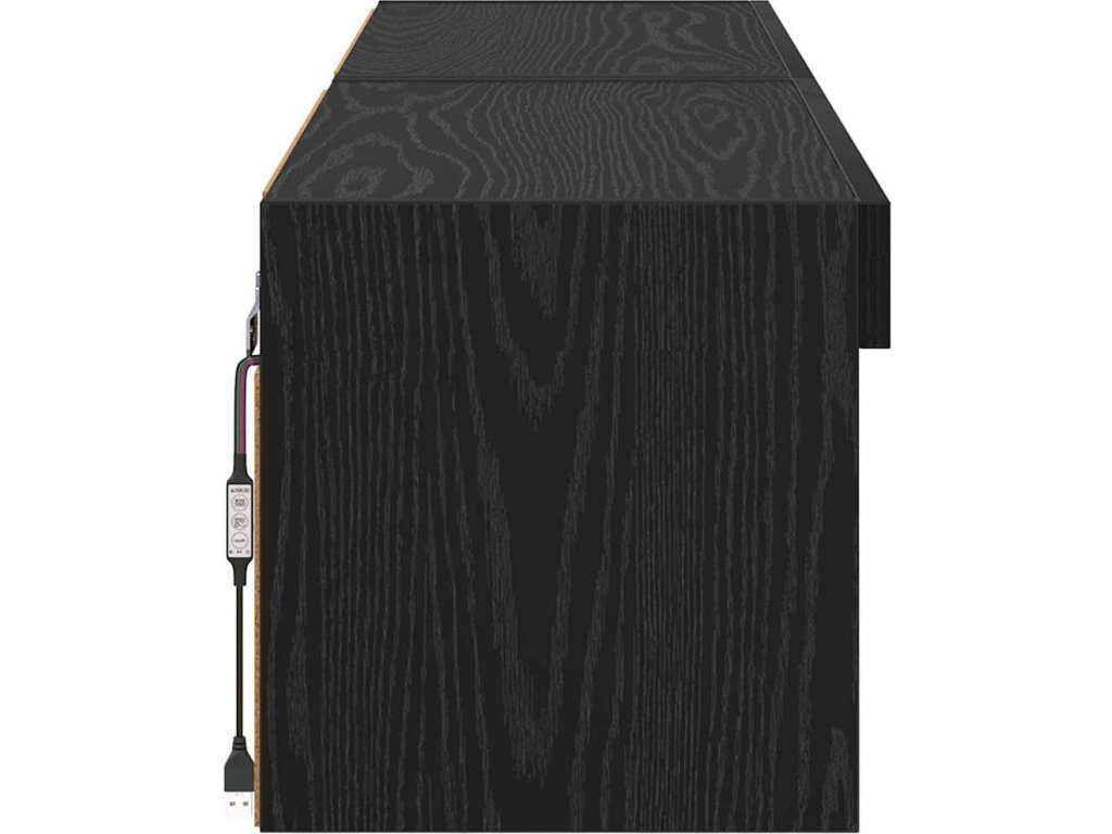 - Součásti: Skříňka má vícero úložných řešení se silnými policemi z kompozitního dřeva a pantovými dveřmi pro snadný přístup. Barevné LED pásky na USB přidávají moderní nádech a nabízí ambientní osvětlení, které zvýší atmosféru podle vaší nálady.