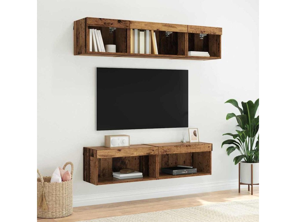Sestava TV skříněk s LED Nástěnný Staré dřevo kompozitní dřevo [882961]
