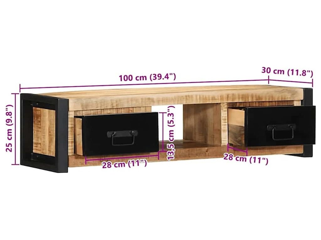 TV skříňka 100x30x25 cm masivní hrubé mangovníkové dřevo [4013597]